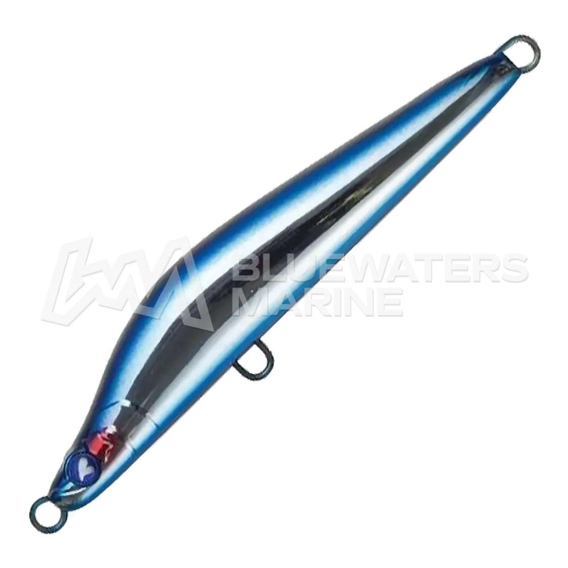 Ideal for casting into baitfish boils, the BlueBlue Bashooot!!! lure delivers long-distance performance with minimal air resistance, allowing quick, accurate targeting of surface activity. Its tough through-wire construction and support for hook sizes up to #2 make it dependable for offshore species like amberjack, yellowtail, kingfish, tuna, bonito, and dolphinfish. With smaller hooks, it offers wider swimming action and quicker surfacing, making it suitable for flatfish and seabass from the surf or rockfish species like hira-suzuki and seabream. The fat body produces a strong wobble and roll, while the internal free-moving weight ball adds irregular diving action, S-curves, and sound to attract fish effectively.