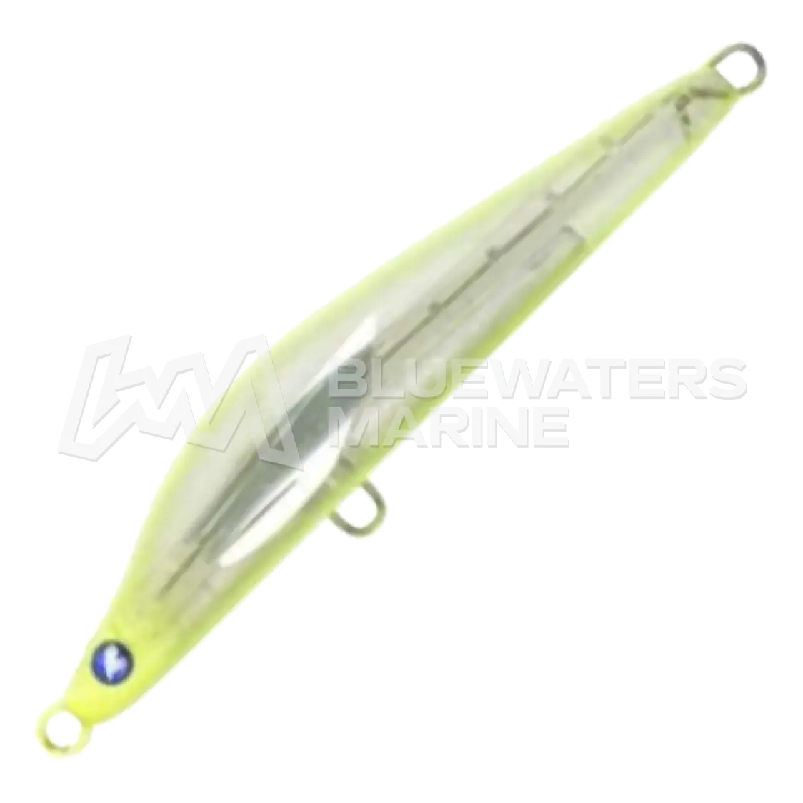 Ideal for casting into baitfish boils, the BlueBlue Bashooot!!! lure delivers long-distance performance with minimal air resistance, allowing quick, accurate targeting of surface activity. Its tough through-wire construction and support for hook sizes up to #2 make it dependable for offshore species like amberjack, yellowtail, kingfish, tuna, bonito, and dolphinfish. With smaller hooks, it offers wider swimming action and quicker surfacing, making it suitable for flatfish and seabass from the surf or rockfish species like hira-suzuki and seabream. The fat body produces a strong wobble and roll, while the internal free-moving weight ball adds irregular diving action, S-curves, and sound to attract fish effectively.