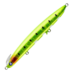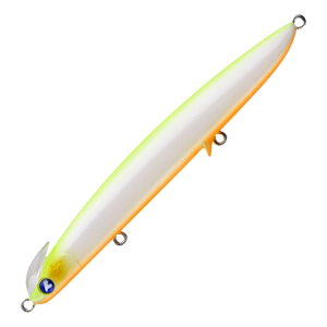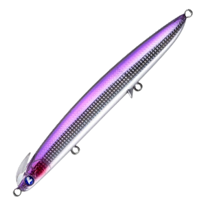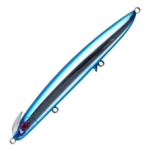 The BlueBlue Frid is a sinking pencil bait designed for surf fishing, featuring a rear-heavy balance for long casting and fast, controlled sinking. Its unique twin-lip structure produces a wide, metronome-like swing with strong vibrations that send clear feedback through the rod. The abdominal lip helps maintain a horizontal swimming posture, mimicking the silhouette of a metal jig to entice cautious fish. Easy to track on the drop and resistant to snagging, the Frid is ideal for targeting fish that are visible but difficult to hook.