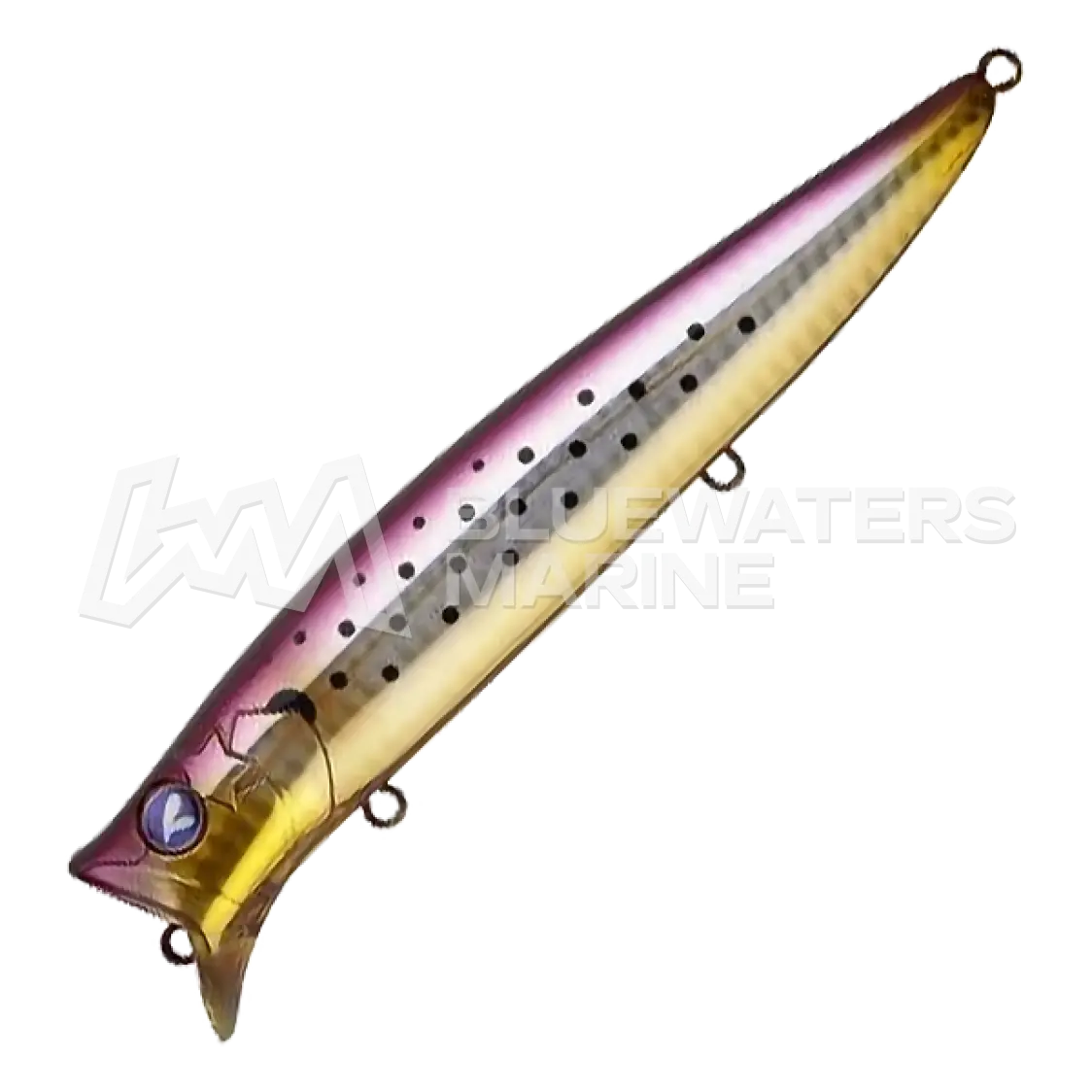 The Gaboz!!! by BlueBlue is a unique surface lure that combines popper splashes with minnow-like swimming. Engineered to stay on top at any speed, it creates an enticing rear wave to draw strikes. Versatile and responsive, it can also be worked with a side-to-side motion for added appeal.