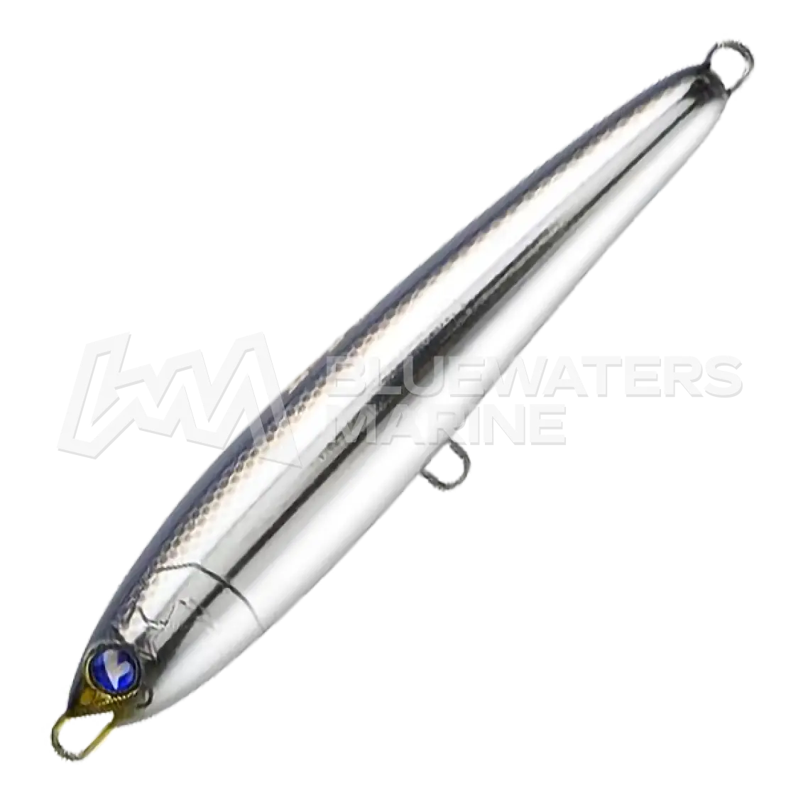 The BlueBlue Gachipen is a diving pencil bait designed for long-distance casting and dynamic underwater action. Made from durable yet slimmed-down ABS resin, it maintains a tail-centred balance and stable horizontal posture in flight. Its fat body generates strong wobble-and-roll motion, while a free-moving weight ball in the head produces an irregular S-curve dive and a clattering sound that draws fish from a wide area.
