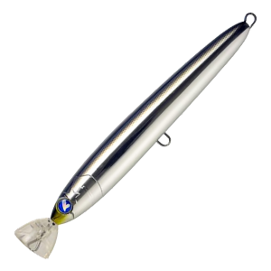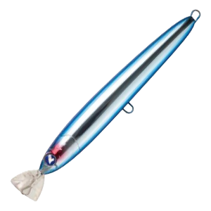 The BlueBlue GachiPop Tulipa is a vertically floating slim popper made for targeting tuna, GT, and other pelagic fish. Easy to use, it casts well, resists action errors, and performs reliably even in crosswinds.Its slim, low-resistance body ensures long casts and works well when fish feed on small bait. A patented clear cup and tapered rear reduce visibility, mimic a diving pencil, and boost stability in the water.Despite its slender shape, the deep-cut cup produces strong splash and pop sounds to trigger strikes. The rear taper traps air, creating a unique bubble trail, while a free-moving weight inside rattles with wave motion to draw attention.With through-wire construction and refined details, the GachiPop Tulipa blends performance, versatility, and lasting surface appeal.