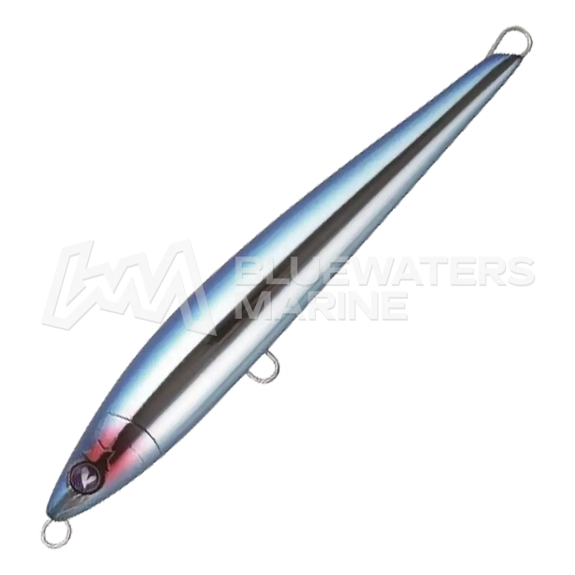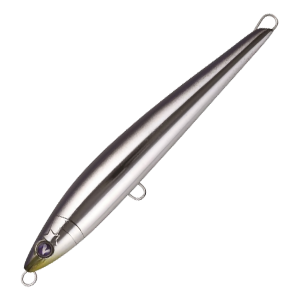 The BlueBlue Gachisla is a heavyweight sinking pencil designed for targeting large predators like giant trevally and bluefish. Its slim, rear-weighted body minimises air resistance for exceptional casting distance and a fast, controlled drop.Despite its slender profile, the lure delivers a strong wobble-and-roll action. A free-moving internal weight in the head creates an unpredictable S-curve on the dive, accompanied by a distinctive clatter that draws fish from a distance. Built with reliable through-wire construction, the Gachisla combines long-range performance with the strength needed for big-game encounters.