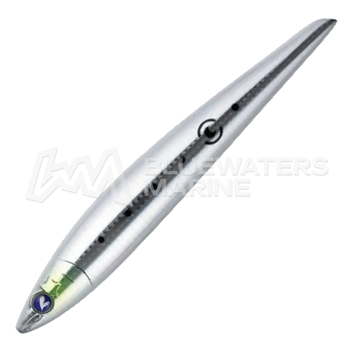 The BlueBlue Gachisla is a heavyweight sinking pencil designed for targeting large predators like giant trevally and bluefish. Its slim, rear-weighted body minimises air resistance for exceptional casting distance and a fast, controlled drop.Despite its slender profile, the lure delivers a strong wobble-and-roll action. A free-moving internal weight in the head creates an unpredictable S-curve on the dive, accompanied by a distinctive clatter that draws fish from a distance. Built with reliable through-wire construction, the Gachisla combines long-range performance with the strength needed for big-game encounters.