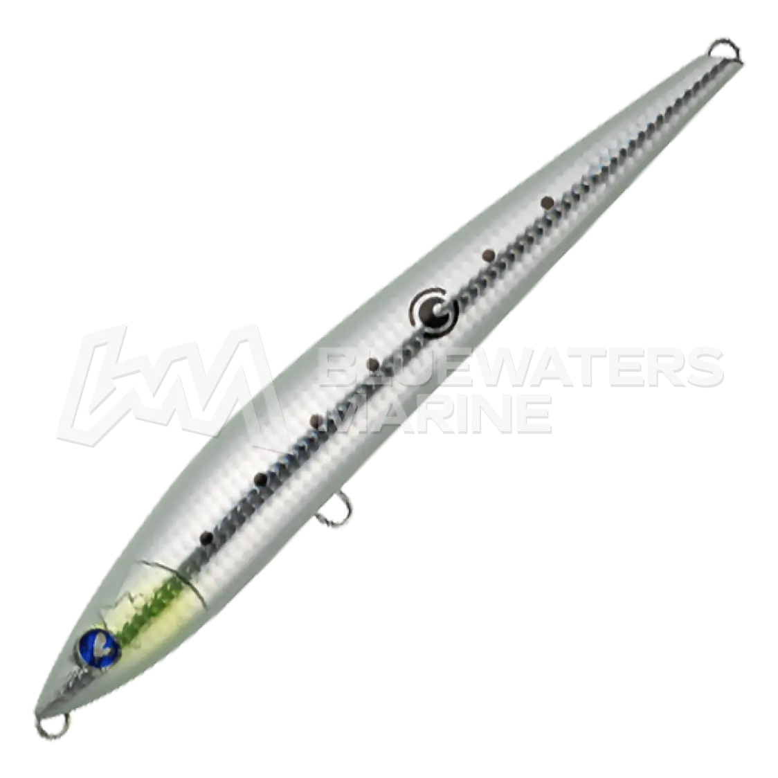 The BlueBlue Gachisla is a heavyweight sinking pencil designed for targeting large predators like giant trevally and bluefish. Its slim, rear-weighted body minimises air resistance for exceptional casting distance and a fast, controlled drop.Despite its slender profile, the lure delivers a strong wobble-and-roll action. A free-moving internal weight in the head creates an unpredictable S-curve on the dive, accompanied by a distinctive clatter that draws fish from a distance. Built with reliable through-wire construction, the Gachisla combines long-range performance with the strength needed for big-game encounters.