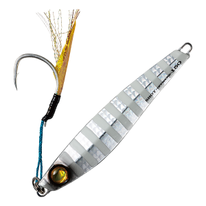 The Hayabusa EX974 Jack Eye Shot Offshore is an all-around vertical jig that is designed for versatility across various fishing conditions. Featuring a semi-centre balance toward the head and an asymmetric body, it delivers an irresistible wobble and vibration on the fall. Its sliding action makes it effective at multiple retrieval speeds—ideal for adapting to fish activity. Anglers can opt for a fast-pitch jerk to trigger darting, sliding movement, or a slow-pitch jerk to shift the jig into a horizontal position, producing wide, side-to-side swings that mimic a dying baitfish.