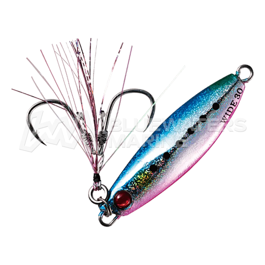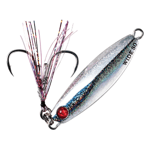 The Hayabusa EX975 Jack Eye Shot Slow Wide is a slow-pitch jig built for versatility and performance in tough conditions. Its asymmetrical, centre-weighted body offers excellent castability and dynamic action, even with slow retrievals or on the fall. One glittered flat side and one conical side with shimmer tape create an erratic, light-reflecting flash to attract fish.A reinforced coating resists impact, while tin-coated hooks and a Sabiki-style assist line provide corrosion resistance and visibility. Designed for strong currents or surf, it excels with slow retrievals or gentle jerks, mimicking wounded baitfish. The double assist hooks reduce snags, making it ideal for shore and offshore jigging. It’s especially effective when fish are sluggish or near the bottom, targeting species like snapper, trevally, grouper, and seabream.