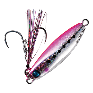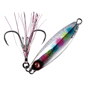 The Hayabusa EX975 Jack Eye Shot Slow Wide is a slow-pitch jig built for versatility and performance in tough conditions. Its asymmetrical, centre-weighted body offers excellent castability and dynamic action, even with slow retrievals or on the fall. One glittered flat side and one conical side with shimmer tape create an erratic, light-reflecting flash to attract fish.A reinforced coating resists impact, while tin-coated hooks and a Sabiki-style assist line provide corrosion resistance and visibility. Designed for strong currents or surf, it excels with slow retrievals or gentle jerks, mimicking wounded baitfish. The double assist hooks reduce snags, making it ideal for shore and offshore jigging. It’s especially effective when fish are sluggish or near the bottom, targeting species like snapper, trevally, grouper, and seabream.
