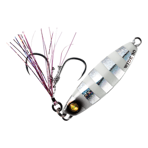 The Hayabusa EX975 Jack Eye Shot Slow Wide is a slow-pitch jig built for versatility and performance in tough conditions. Its asymmetrical, centre-weighted body offers excellent castability and dynamic action, even with slow retrievals or on the fall. One glittered flat side and one conical side with shimmer tape create an erratic, light-reflecting flash to attract fish.A reinforced coating resists impact, while tin-coated hooks and a Sabiki-style assist line provide corrosion resistance and visibility. Designed for strong currents or surf, it excels with slow retrievals or gentle jerks, mimicking wounded baitfish. The double assist hooks reduce snags, making it ideal for shore and offshore jigging. It’s especially effective when fish are sluggish or near the bottom, targeting species like snapper, trevally, grouper, and seabream.
