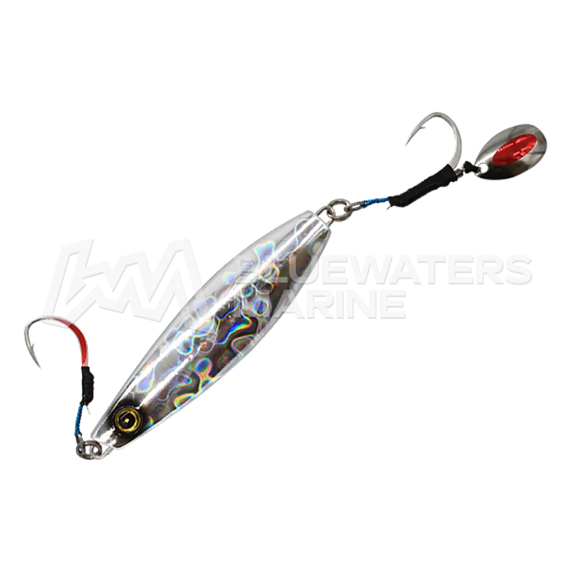 The Hayabusa FS401 Jack Eye Funemaki delivers a fresh and versatile presentation ideal for targeting species like yellowtail, amberjack, snapper, and grouper. Designed for vertical jigging, it excels when retrieved steadily toward the surface with intermittent pauses, triggering reaction strikes from fish across various depth ranges. Its lifelike side-to-side action, combined with vibration and flash produced by the rear holographic blade, makes it highly effective in drawing attention and provoking aggressive bites.