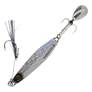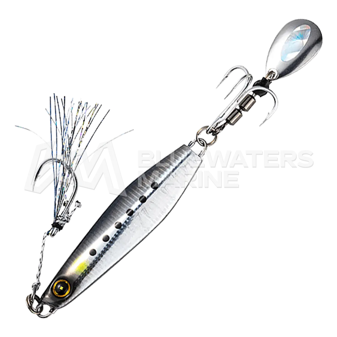 The Hayabusa FS417 Jack Eye MakiMaki is a compact casting jig crafted for light saltwater shore fishing and freshwater perch. Its ultra-dense body features an asymmetrical design—one flat side and one curved—which enhances casting distance and creates an enticing action. The integrated blade ensures the lure is effective both during descent and steady retrieves. Out of the box, it’s equipped with a tail treble hook and a blade mounted on a triple rolling swivel, paired with dual holographic coatings inside and out to maximise visual appeal and trigger strikes in a variety of light conditions.