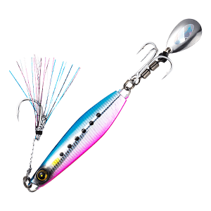 The Hayabusa FS417 Jack Eye MakiMaki is a compact casting jig crafted for light saltwater shore fishing and freshwater perch. Its ultra-dense body features an asymmetrical design—one flat side and one curved—which enhances casting distance and creates an enticing action. The integrated blade ensures the lure is effective both during descent and steady retrieves. Out of the box, it’s equipped with a tail treble hook and a blade mounted on a triple rolling swivel, paired with dual holographic coatings inside and out to maximise visual appeal and trigger strikes in a variety of light conditions.