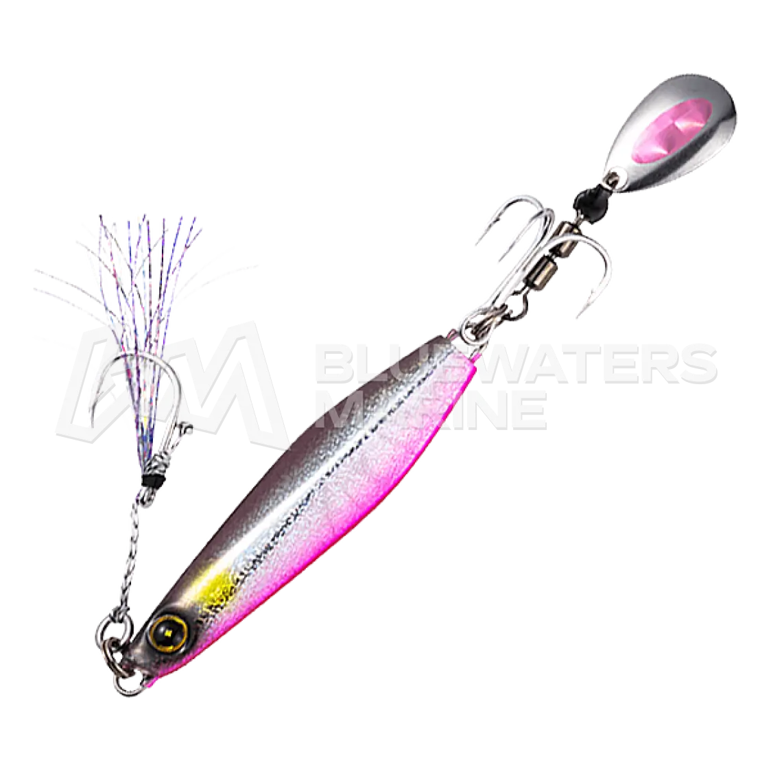 The Hayabusa FS417 Jack Eye MakiMaki is a compact casting jig crafted for light saltwater shore fishing and freshwater perch. Its ultra-dense body features an asymmetrical design—one flat side and one curved—which enhances casting distance and creates an enticing action. The integrated blade ensures the lure is effective both during descent and steady retrieves. Out of the box, it’s equipped with a tail treble hook and a blade mounted on a triple rolling swivel, paired with dual holographic coatings inside and out to maximise visual appeal and trigger strikes in a variety of light conditions.