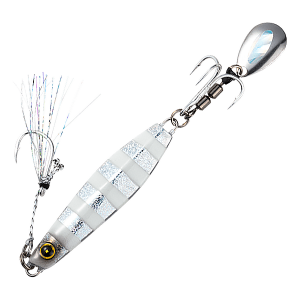The Hayabusa FS417 Jack Eye MakiMaki is a compact casting jig crafted for light saltwater shore fishing and freshwater perch. Its ultra-dense body features an asymmetrical design—one flat side and one curved—which enhances casting distance and creates an enticing action. The integrated blade ensures the lure is effective both during descent and steady retrieves. Out of the box, it’s equipped with a tail treble hook and a blade mounted on a triple rolling swivel, paired with dual holographic coatings inside and out to maximise visual appeal and trigger strikes in a variety of light conditions.
