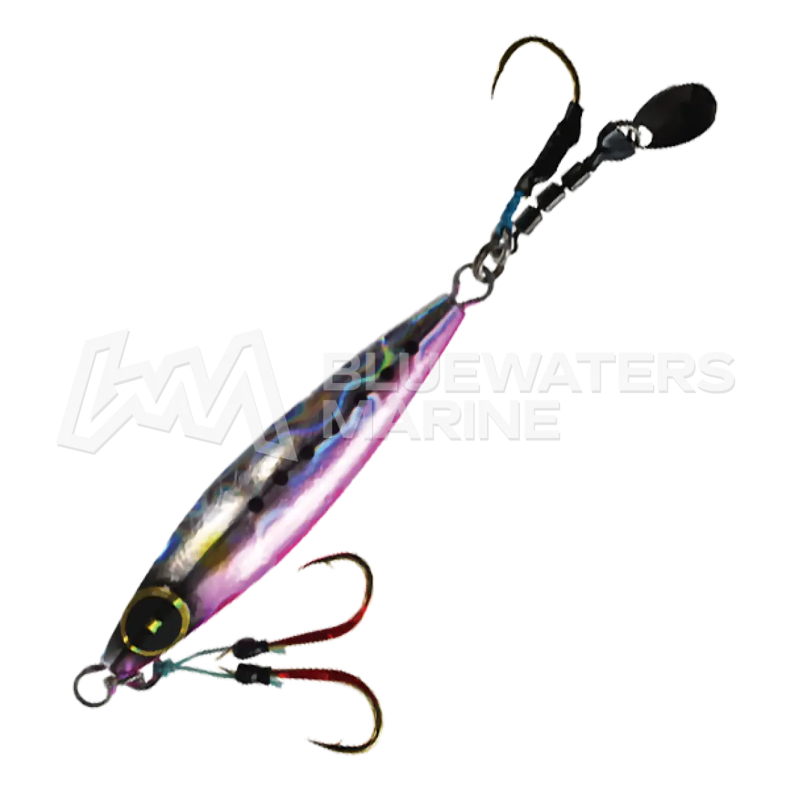 The Hayabusa FS432 Jack Eye Makinomy is a compact jig developed specifically for super light jigging. Designed with a minimised round-bodied profile, it excels in delicate presentations while maintaining strong visual appeal. Its integrated spinning holographic blade produces eye-catching flash and motion, effectively drawing the attention of various species. This lure is particularly effective when targeting small bluefish, red snapper, flatfish, and bottom-dwelling fish. Ideal for anglers seeking finesse and precision in light jigging scenarios.