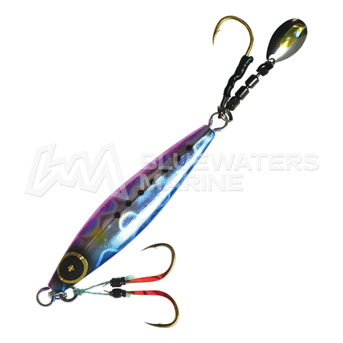 The Hayabusa FS432 Jack Eye Makinomy is a compact jig developed specifically for super light jigging. Designed with a minimised round-bodied profile, it excels in delicate presentations while maintaining strong visual appeal. Its integrated spinning holographic blade produces eye-catching flash and motion, effectively drawing the attention of various species. This lure is particularly effective when targeting small bluefish, red snapper, flatfish, and bottom-dwelling fish. Ideal for anglers seeking finesse and precision in light jigging scenarios.