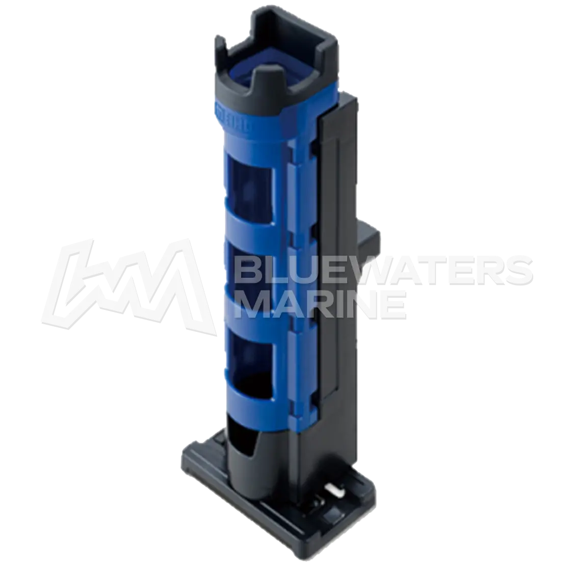 The Meiho Rod Stand BM-280, measuring 62×70×316mm (base width 100mm), is made from durable polycarbonate and elastomer resins with stainless steel screws. Compatible with the Bucket Mouth series, VW-2070, VW-2055, VS-7070, and VS-7055, it features a large 45mm stand hole diameter and an adjustable three-position length for versatile use. Despite its compact size, it can securely hold gaffs, landing shafts, and other gear upright.