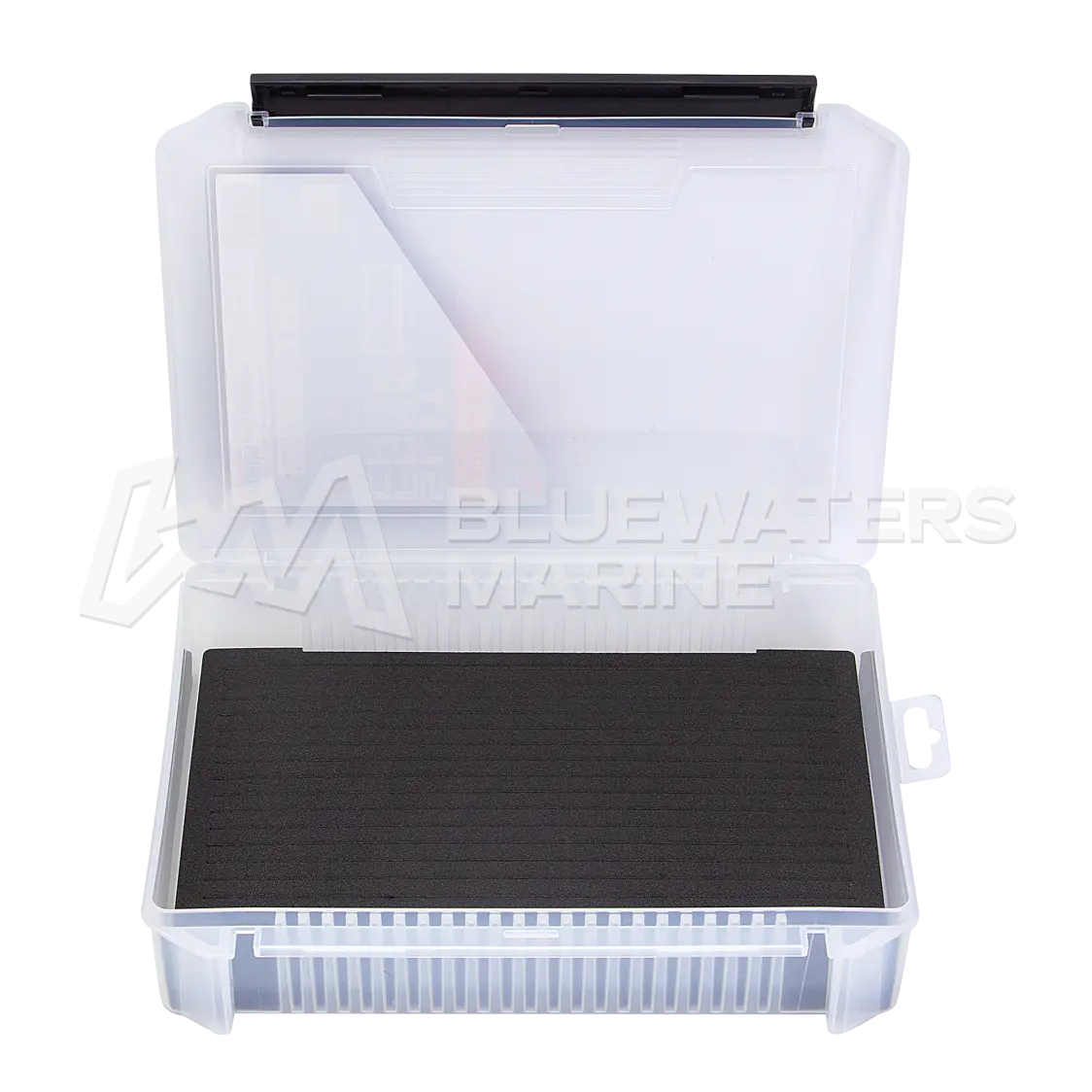 The Meiho Slit Form Case 3020NDDM is a plastic storage case intended for organising fishing lures and small tackle items. It is equipped with a hinged lid and an internal foam insert featuring pre-cut slits, allowing hooks and lures to be secured firmly in place. This configuration helps prevent movement and reduces the likelihood of tangling during storage and transport.