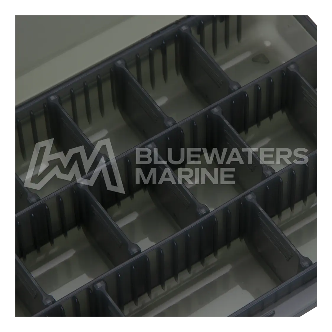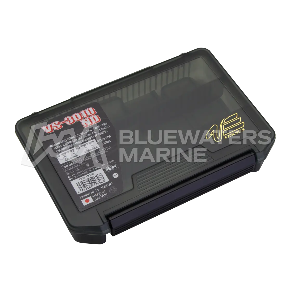 The Meiho Versus VS-3010ND measures 205 × 145 × 40 mm and features a polypropylene body paired with an ABS closure for durability. Designed as a deep-type storage case, it includes 12 adjustable dividers to support customised organisation and offers worm-resistant construction to protect soft baits. The unit is compatible with the lower compartments of the VS-7055 and VW-2055 tackle systems.