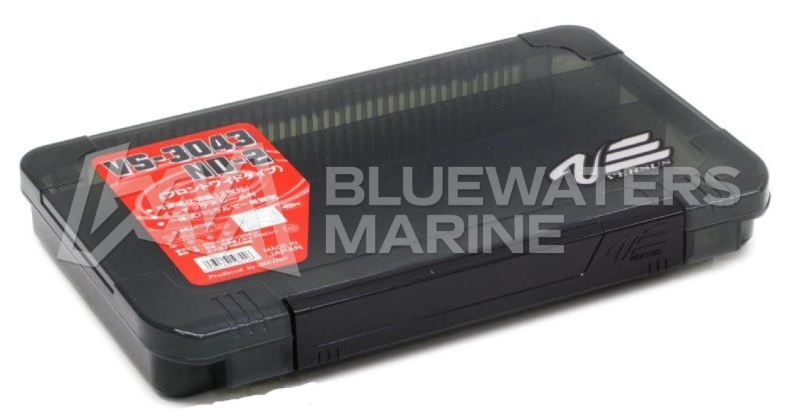 The Meiho Versus VS-3043ND-2 is a wormproof tackle case measuring 356 × 230 × 50 mm, built with a polypropylene body and ABS closure. It includes 4 large and 8 small adjustable dividers, offering an irregular divider pattern that makes it easy to store a variety of lures in one case. Compatible with the BM-9000 and BM-7000 systems, this 40 cm bucket-size case is versatile and organised tackle storage.