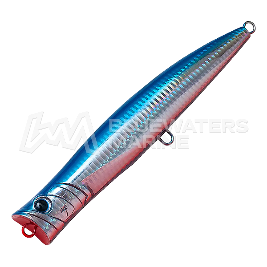 The Palms Break Head is a slim-bodied swimming popper designed to showcase the true essence of bluefish popper fishing: powerful bubbling action. Its wide cup generates intense bubbles, while a near-vertical floating posture reduces missed bites and ensures usability from high-footing spots. The ventral edge lessens water resistance, creating a natural wobble as it captures bubbles during continuous popping or long jerks. Highly responsive to angler input, it combines strong basic performance with versatile control.