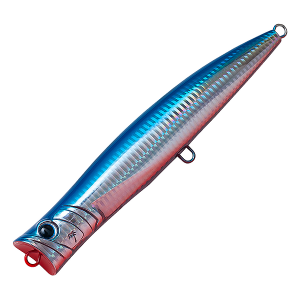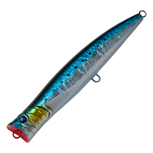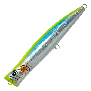 The Palms Break Head is a slim-bodied swimming popper designed to showcase the true essence of bluefish popper fishing: powerful bubbling action. Its wide cup generates intense bubbles, while a near-vertical floating posture reduces missed bites and ensures usability from high-footing spots. The ventral edge lessens water resistance, creating a natural wobble as it captures bubbles during continuous popping or long jerks. Highly responsive to angler input, it combines strong basic performance with versatile control.
