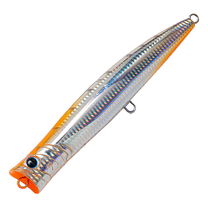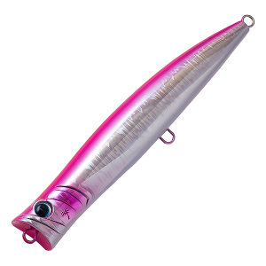The Palms Break Head is a slim-bodied swimming popper designed to showcase the true essence of bluefish popper fishing: powerful bubbling action. Its wide cup generates intense bubbles, while a near-vertical floating posture reduces missed bites and ensures usability from high-footing spots. The ventral edge lessens water resistance, creating a natural wobble as it captures bubbles during continuous popping or long jerks. Highly responsive to angler input, it combines strong basic performance with versatile control.