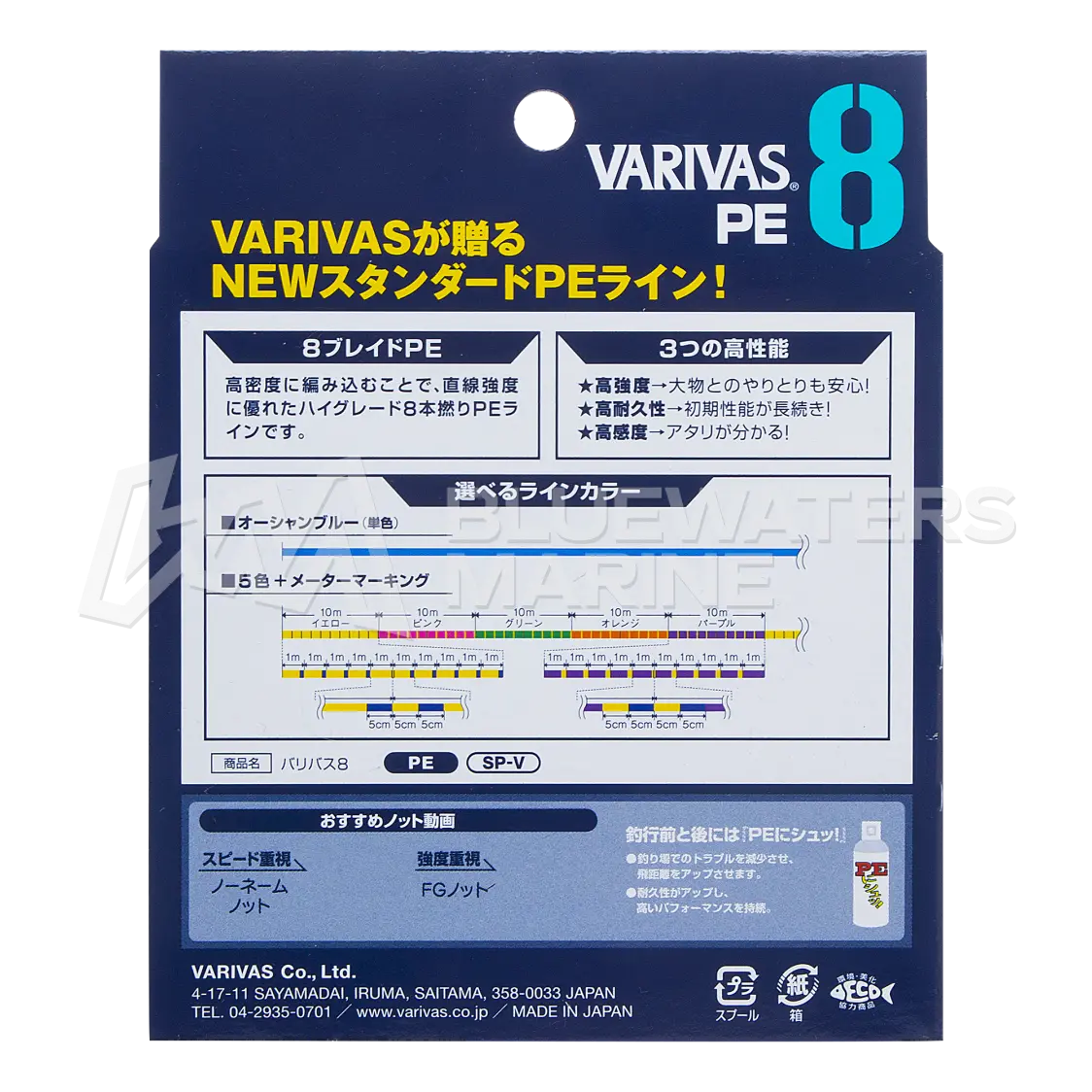 The Varivas 8 PE Marking is a premium 8-strand braided fishing line designed for smooth casting, strength, and sensitivity. Its high-density weave delivers excellent linear strength while remaining thin and nearly invisible in the water, allowing anglers to take on larger targets with confidence. Resin infusion and a special coating enhance durability, while Varivas’ advanced manufacturing process ensures consistency and reliability. With outstanding sensitivity to detect even the slightest bites, this line elevates performance for a wide range of fishing applications.